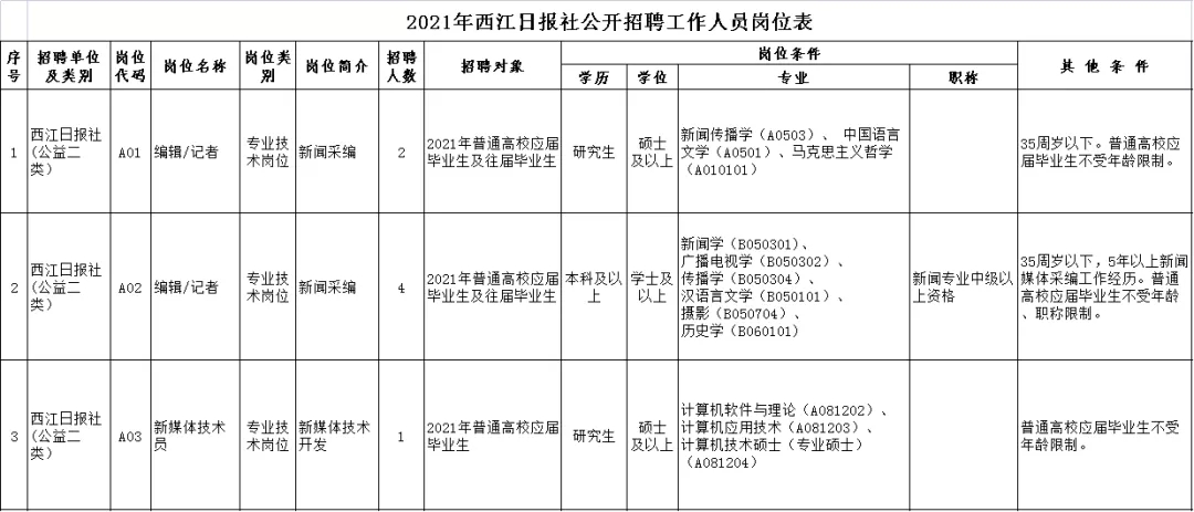 (4)時間地點:面試具體時間、地點、注意事項等由西江日報社另行通知。