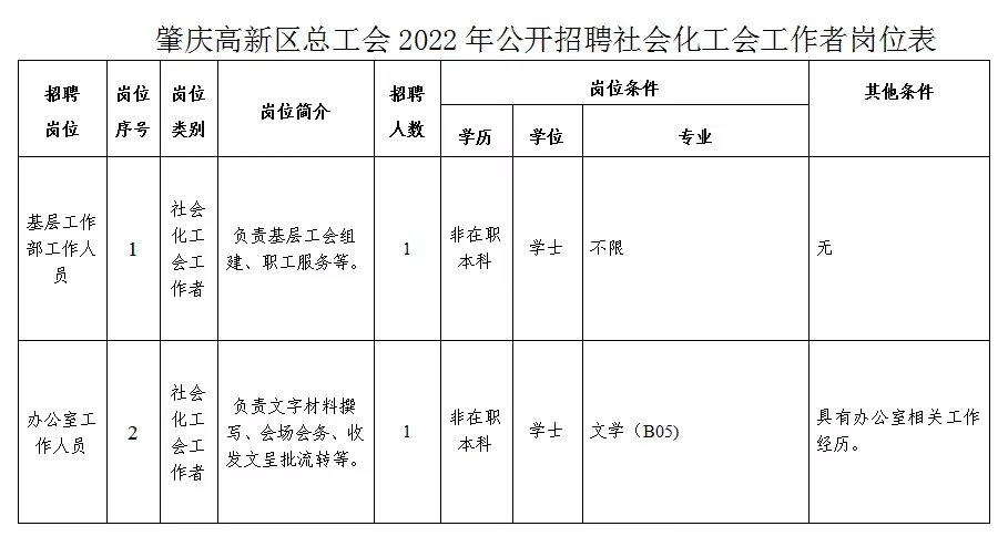 2、報名地點:肇慶高新區(qū)知青路區(qū)總工會(辦公樓二樓信息調(diào)研室)。