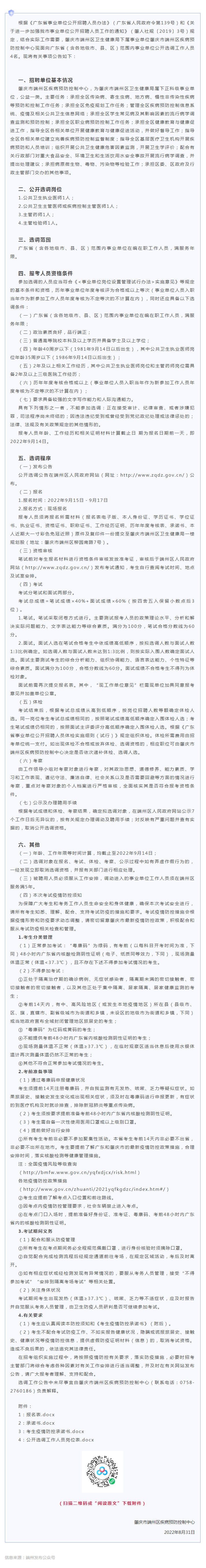 2022年肇慶市端州區(qū)疾病預(yù)防控制中心公開選調(diào)工作人員公告